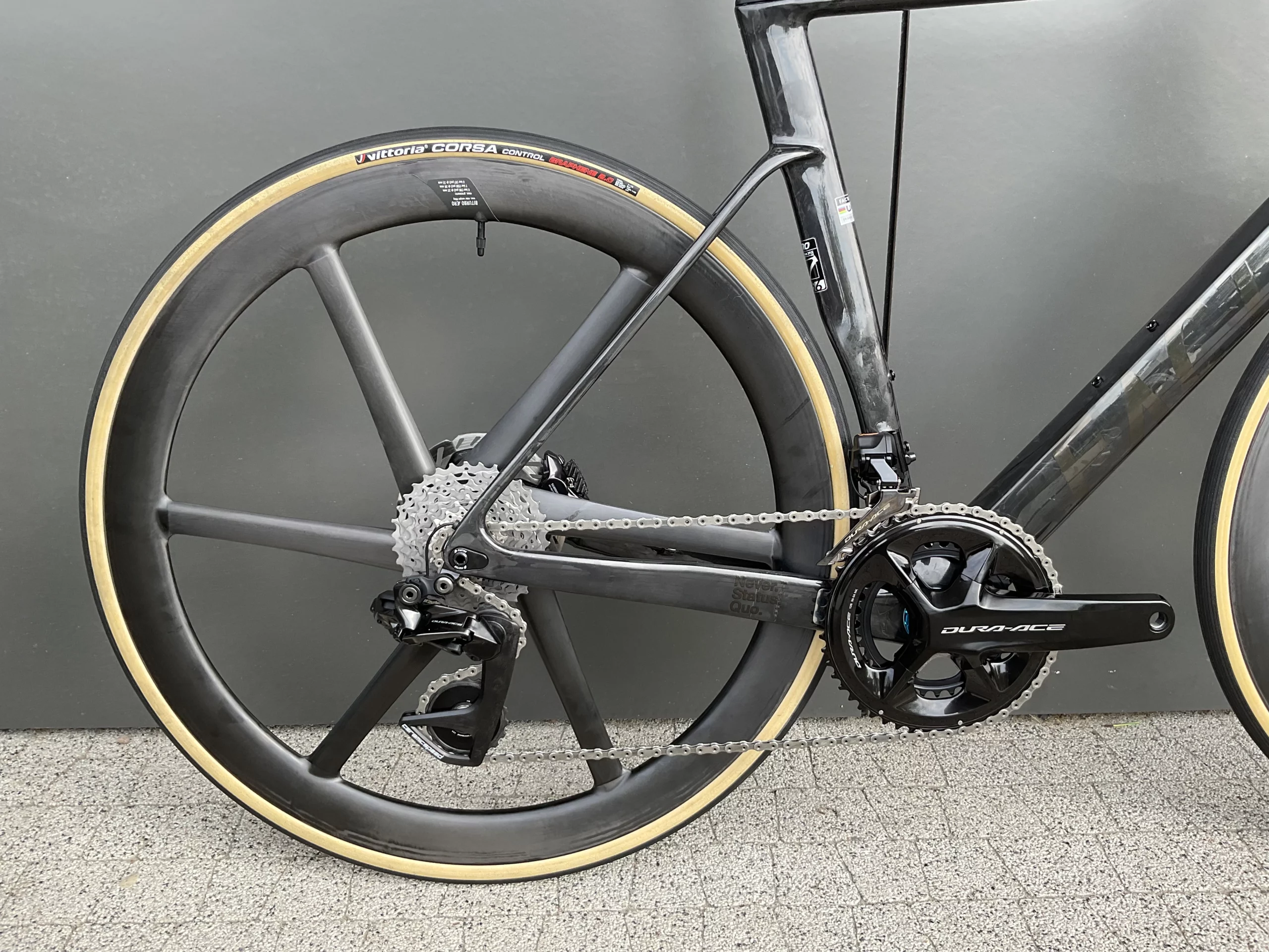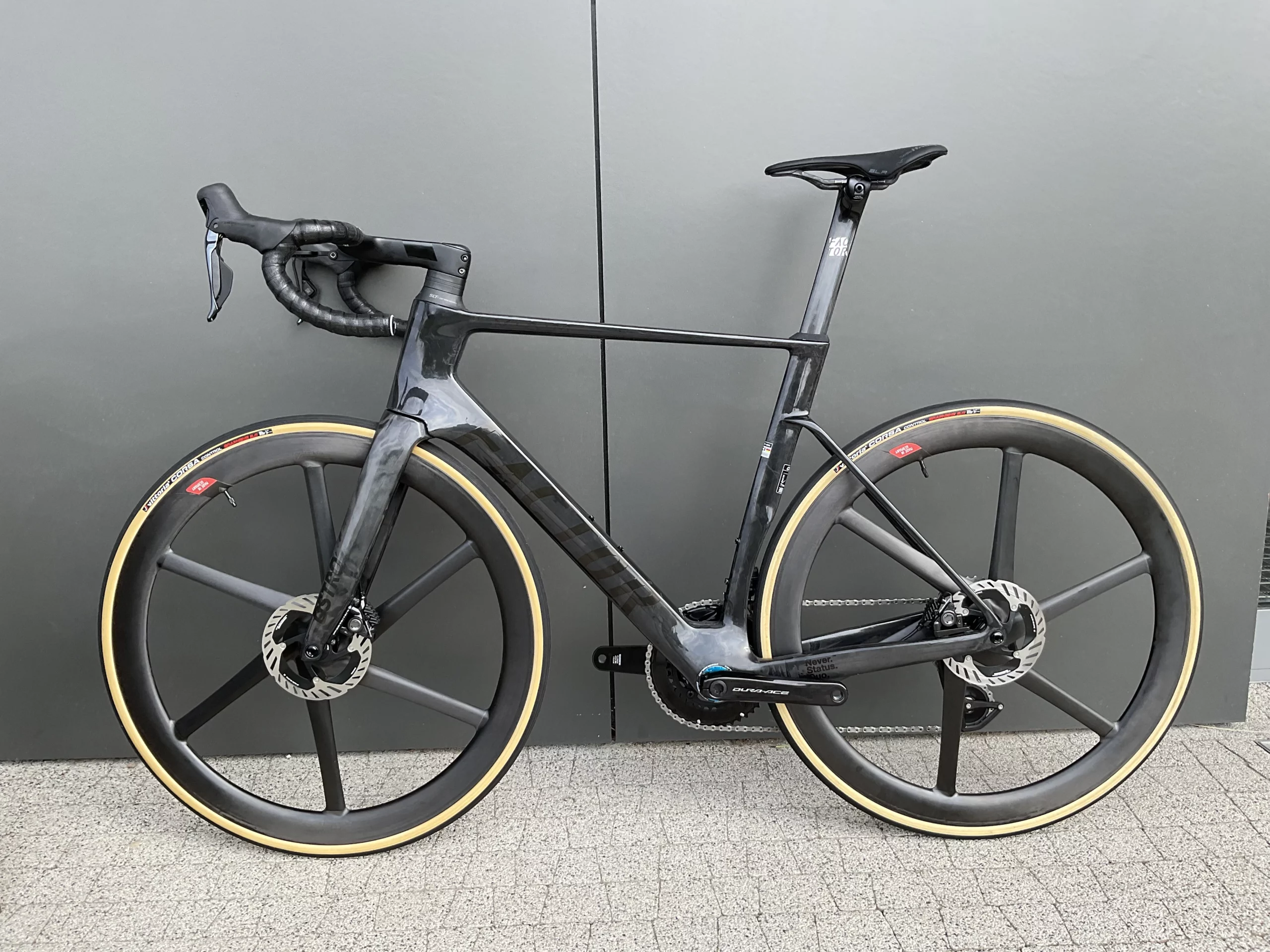 Rower wyposażono w hamulce Shimano Dura-Ace, które gwarantują precyzyjne i pewne hamowanie w każdych warunkach. Manetki Shimano Dura-Ace Di2 Disc zapewniają intuicyjną obsługę, zwiększając kontrolę nad rowerem. Dzięki nim jazda jest płynna i komfortowa, nawet przy dużych prędkościach.